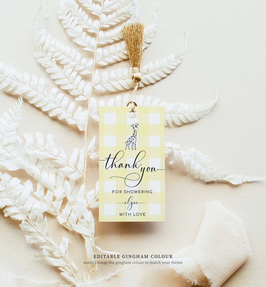 Gingham Blue Giraffe | Printable Thank You Favour Tag Template