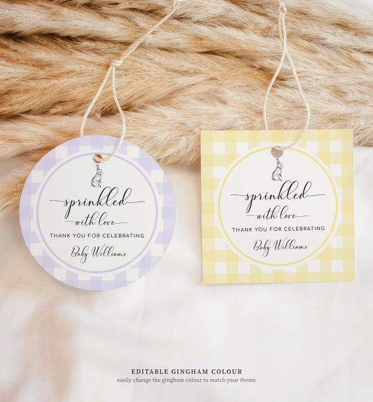 Gingham Blue Bunny | Printable Sprinkled With Love Favour Tag Template