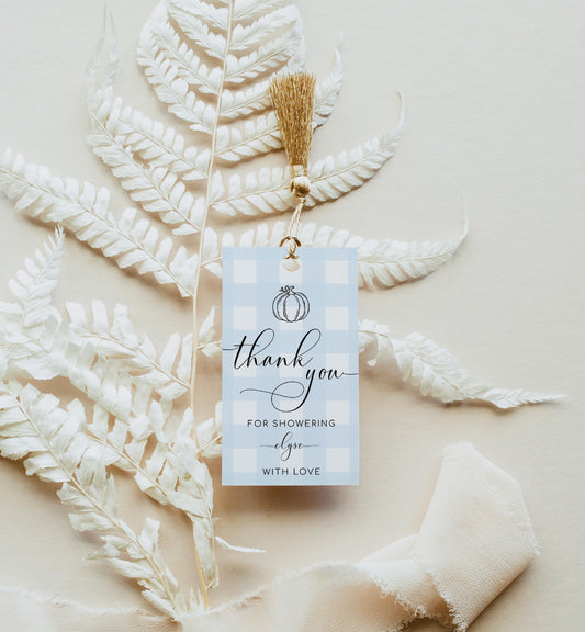 Gingham Blue Pumpkin | Printable Favour Tags
