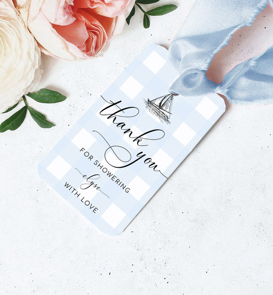 Gingham Blue Sailing Boat | Printable Thank You Favour Tag Template