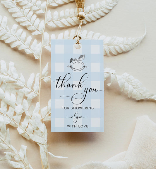 Gingham Blue Rocking Horse | Printable Favour Tags