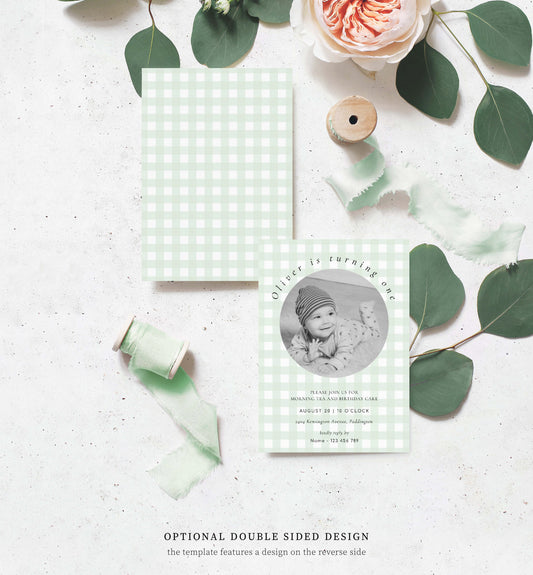 Gingham Green | Printable Birthday Photo Invitation Template