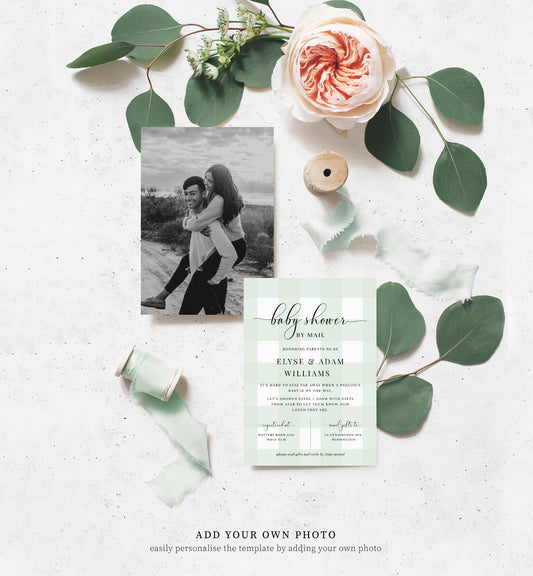 Gingham Green | Printable Baby Shower By Mail Invitation