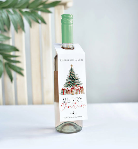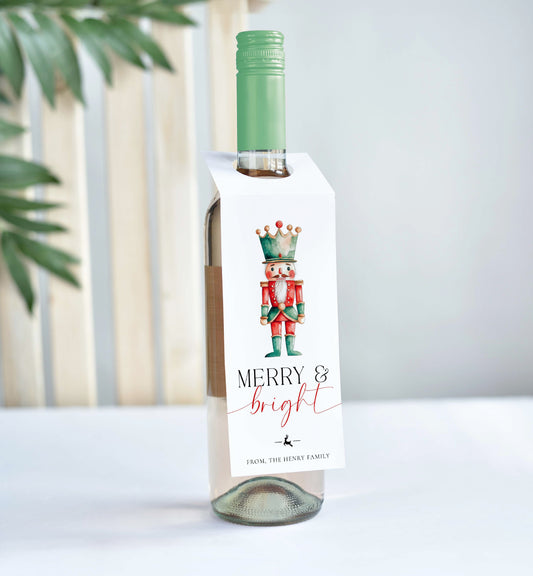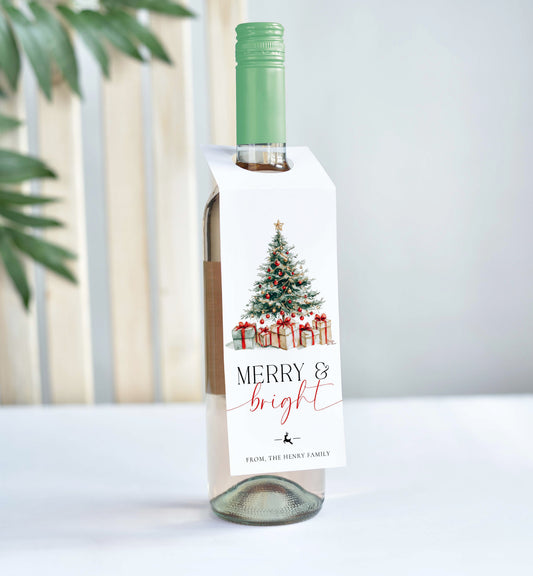 Magical Christmas | Printable Merry and Bright Wine Bottle Bib Gift Tag