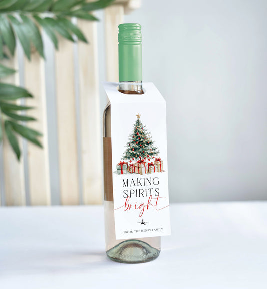 Magical Christmas | Printable Making Spirits Bright Wine Bottle Bib Gift Tag