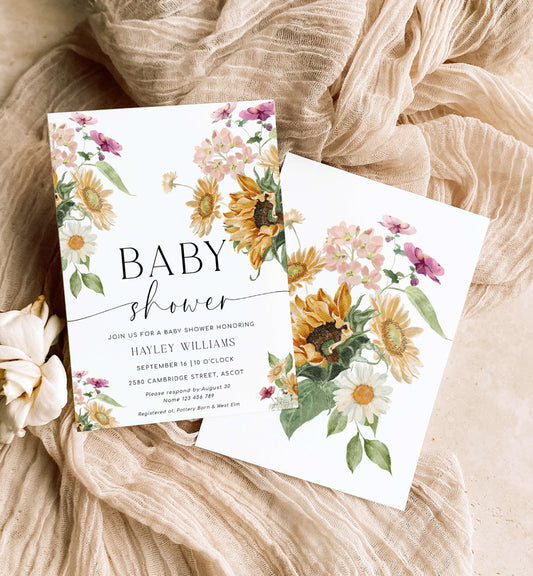 Mews Floral White | Printable Baby Shower Invitation Suite Template