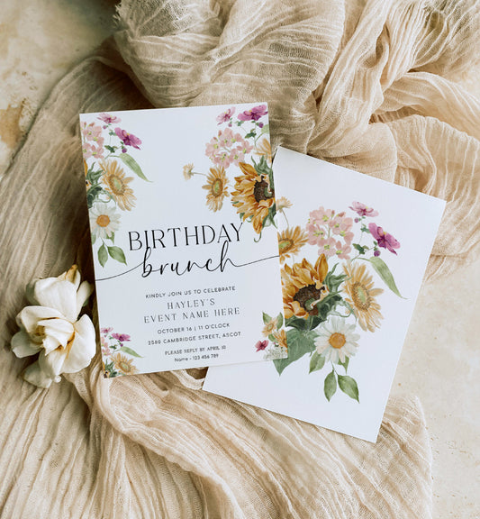 Mews Floral White | Printable Birthday Brunch Invitation Template