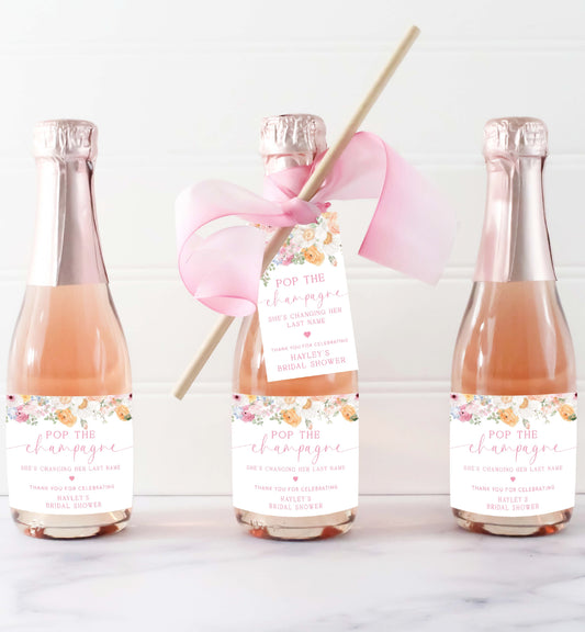 Millie Floral White | Printable Pop The Champagne Favour Tag Template