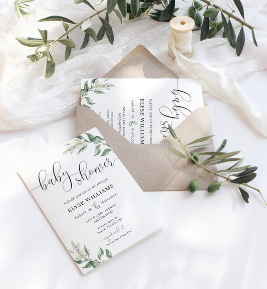 Muted Greenery | Printable Baby Shower Invitation Suite