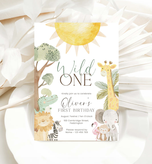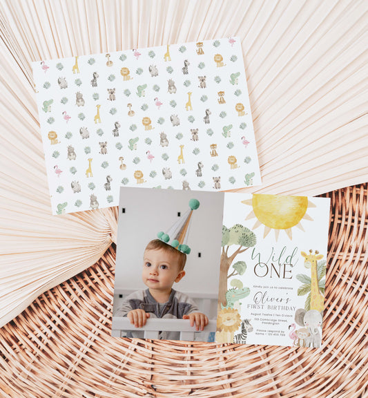 Nyala Safari | Printable First Birthday Photo Invitation Template