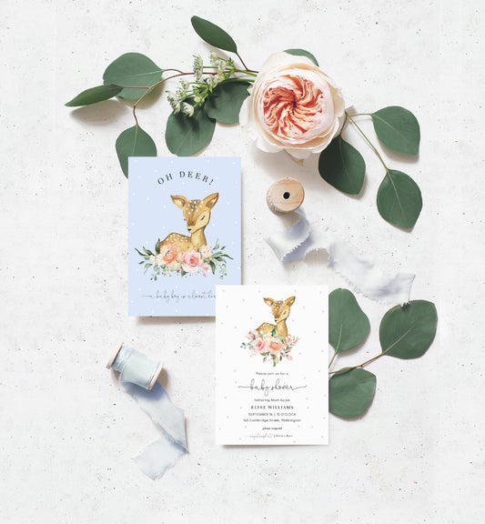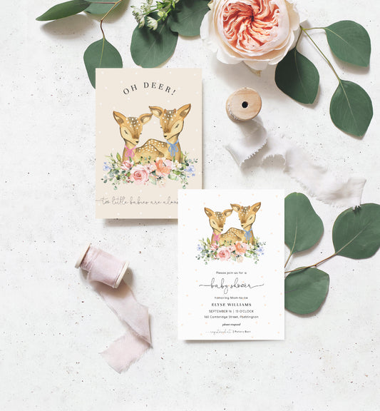 Oh Deer Champagne | Twins Baby Shower Invitation Suite