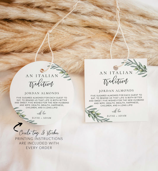 Olive Grove | Printable Jordan Almonds Favour Tag Template