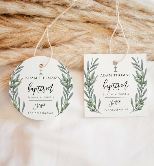 Olive Grove Green | Printable Baptism Favour Tags Template