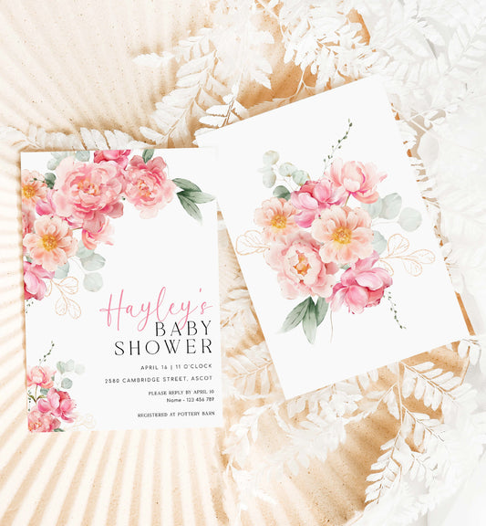 Piper Floral White | Printable Baby In Bloom Invitation Suite Template
