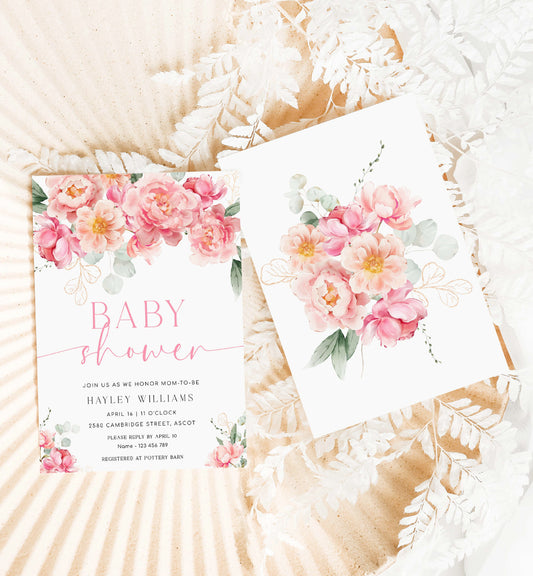 Piper Floral White | Printable Baby Shower Invitation Suite Template