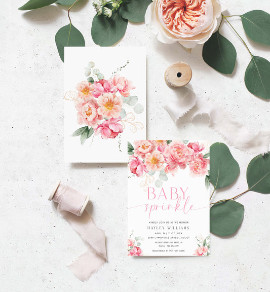 Piper Floral White | Printable Baby Sprinkle Invitation Template