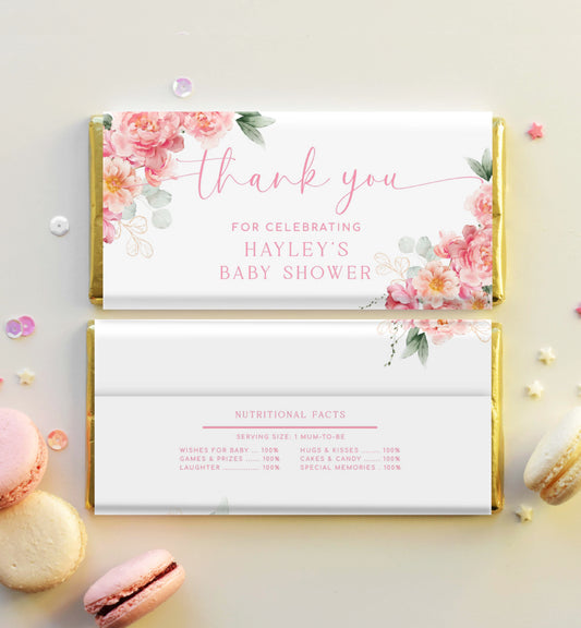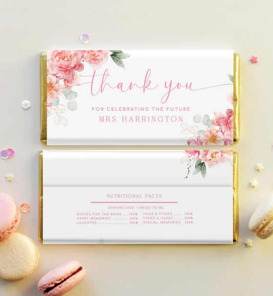 Piper Floral White | Printable Bridal Shower Chocolate Bar Favour Wrappers Template