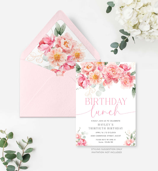 Piper Floral White | Printable Birthday Lunch Invitation Template