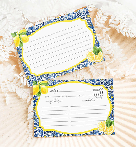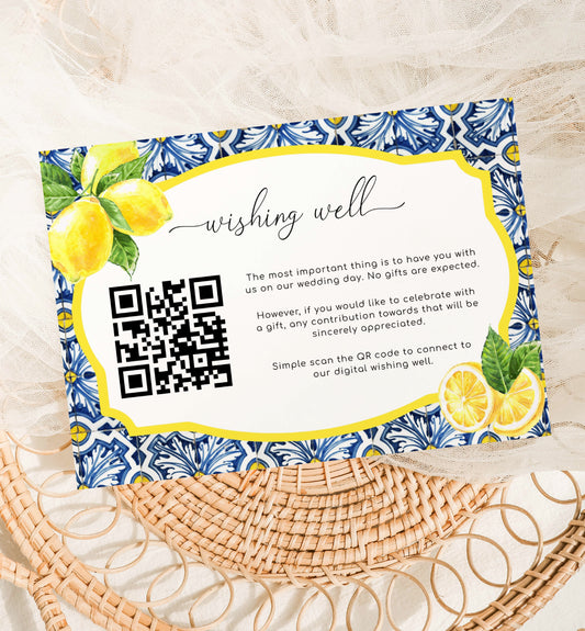 Positano Blue Tile Lemons | Printable QR Wishing Well Card Template