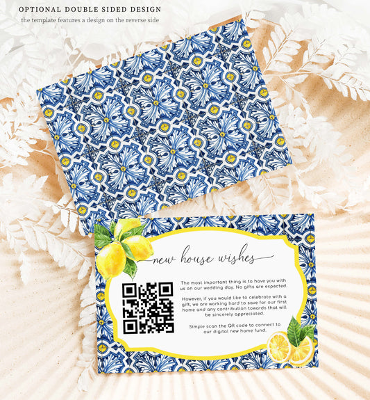 Positano Blue Tile Lemons | Printable QR New Home Fund Card Template