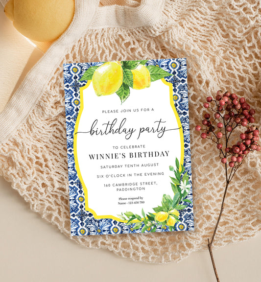 Positano Lemons | Printable Birthday Party Invitation Template