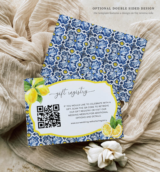 Positano Lemons | Printable QR Code Gift Registry Card Template