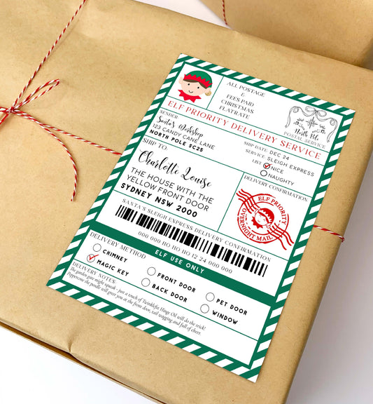 Santa's Workshop Green | Printable Elf Christmas Shipping Label Template