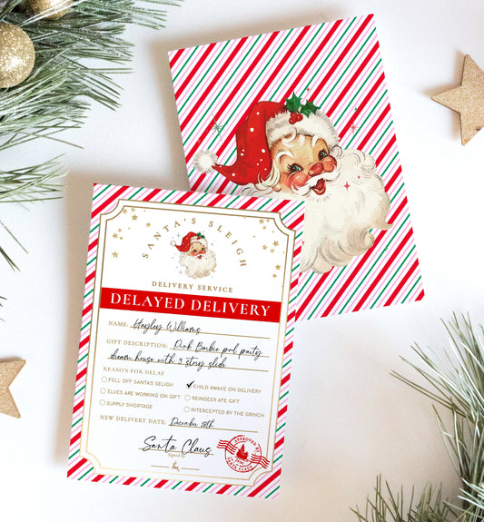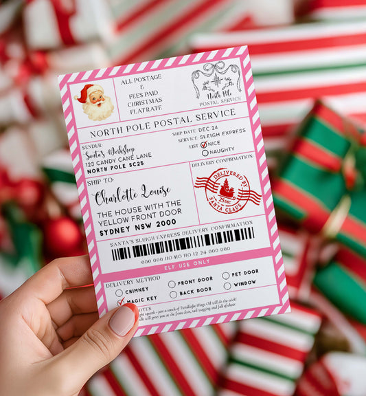 Santa's Workshop Pink Multi | Printable Christmas Delayed Gift Notice Template