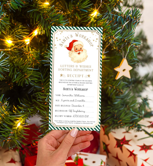 Santa's Workshop Green | Printable Letter To Santa Receipt Template