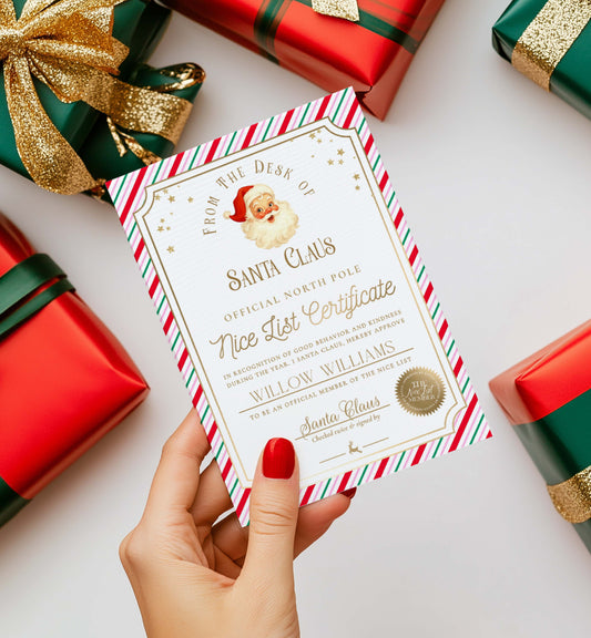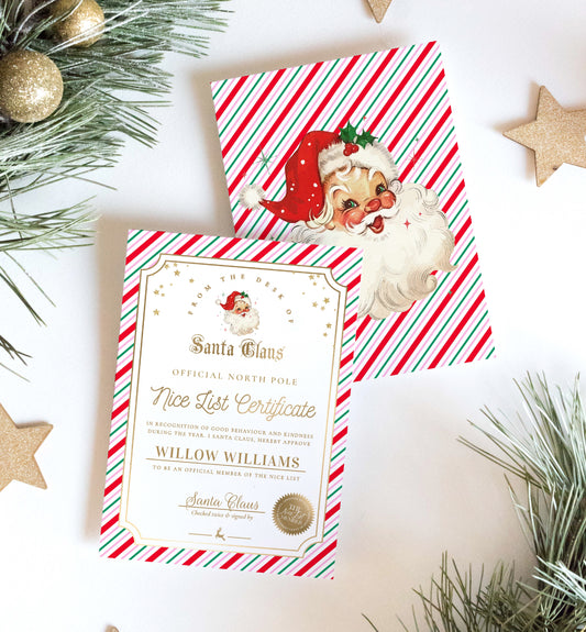Santa's Workshop Pink Multi | Printable Christmas Nice List Certificate Template