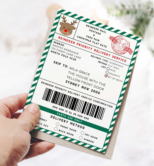Santa's Workshop Green | Printable Reindeer Christmas Shipping Label Template