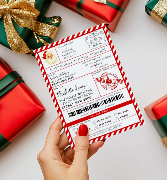 Santa's Workshop Red | Printable Christmas Delayed Gift Notice Template