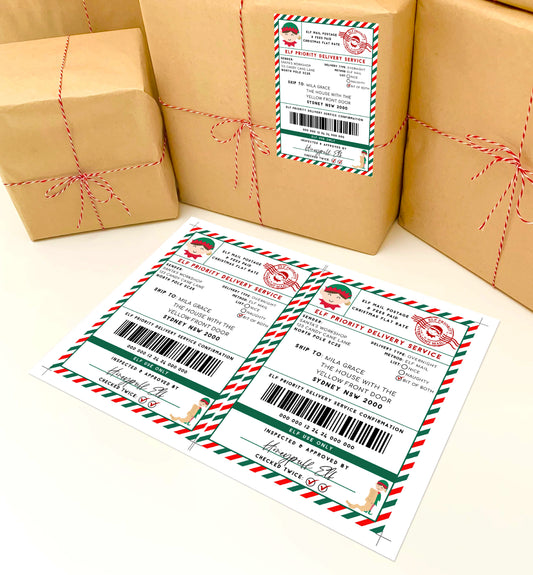 Santa's Workshop Red Green | Printable Elf Christmas Shipping Label Template