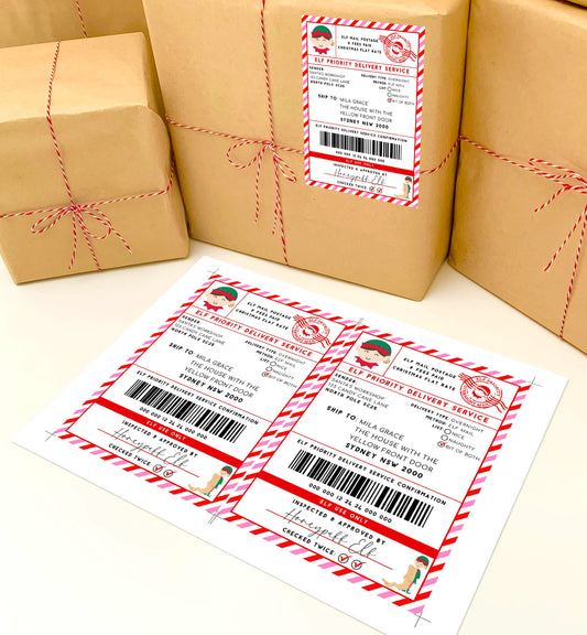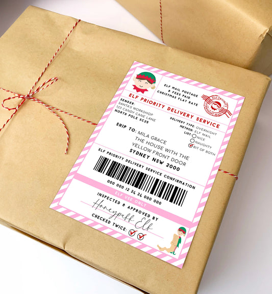 Santa's Workshop Pink | Printable Elf Christmas Shipping Label Template