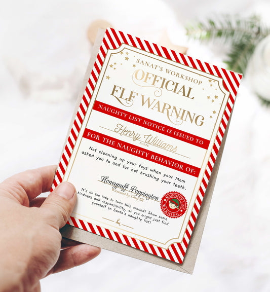 Santa's Workshop Red | Printable Christmas Elf Warning Letter Template