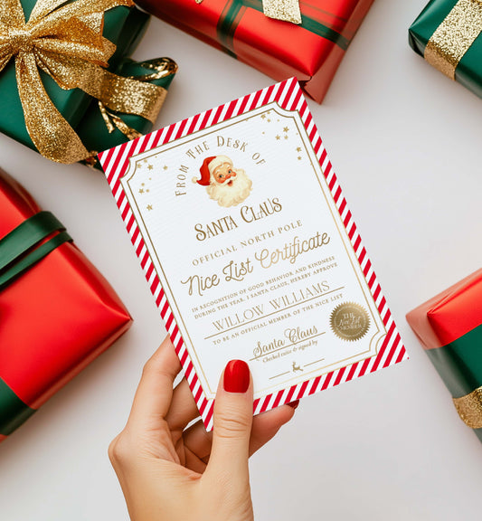 Santa's Workshop Red | Printable Christmas Nice List Certificate Template