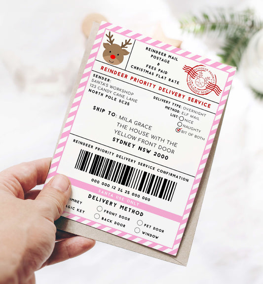 Santa's Workshop Pink | Printable Reindeer Christmas Shipping Label Template
