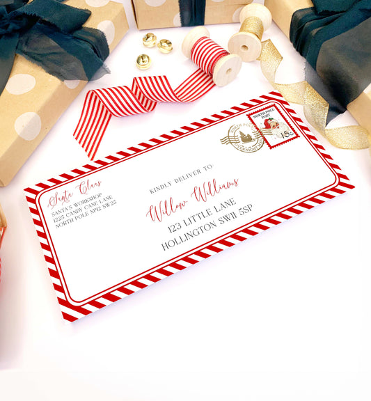 Santa's Workshop Red | Printable Christmas Envelope Template
