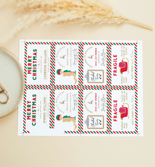 Santa's Workshop Red Green | Printable Christmas Gift Tag Template Bundle