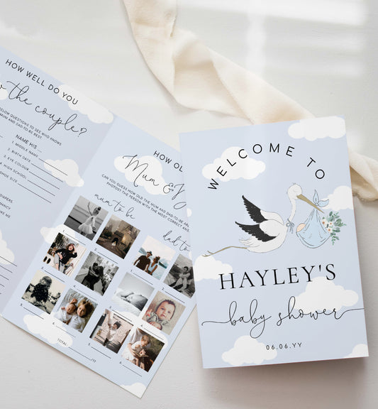 Stork Blue | Printable Baby Shower Game Booklet Template