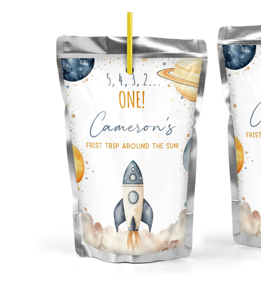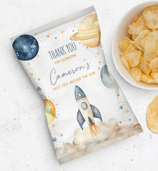 Space White | Printable First Birthday Chocolate Bar Favour Wrappers Template