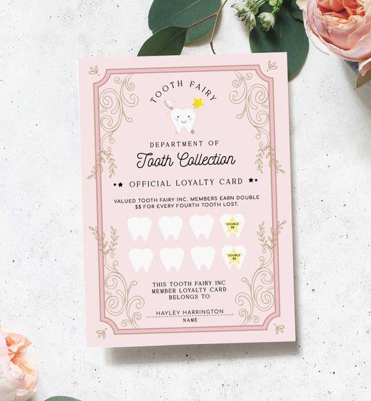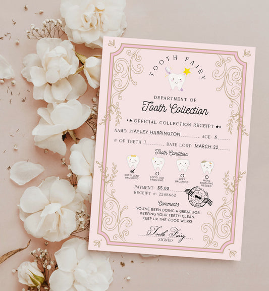 Tooth Fairy Pink | Printable Tooth Collection Receipt Template
