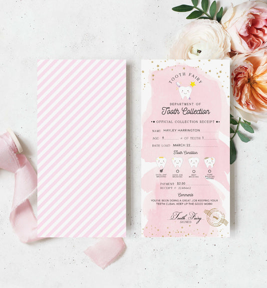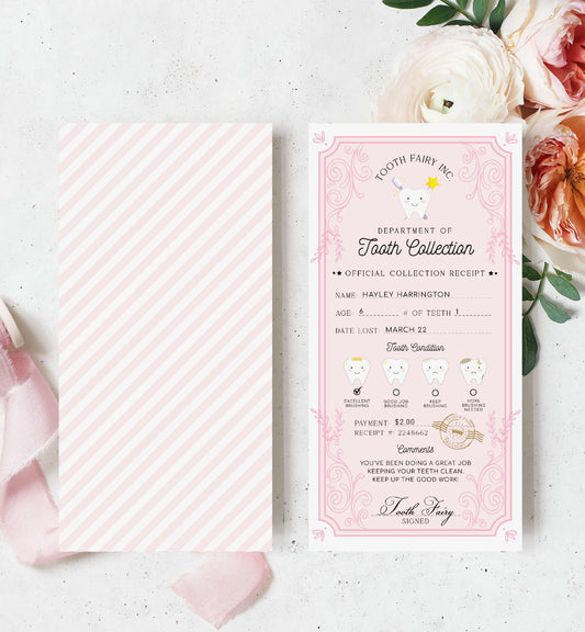 Tooth Fairy Pink White | Printable Tooth Collection Letter and Receipt Template