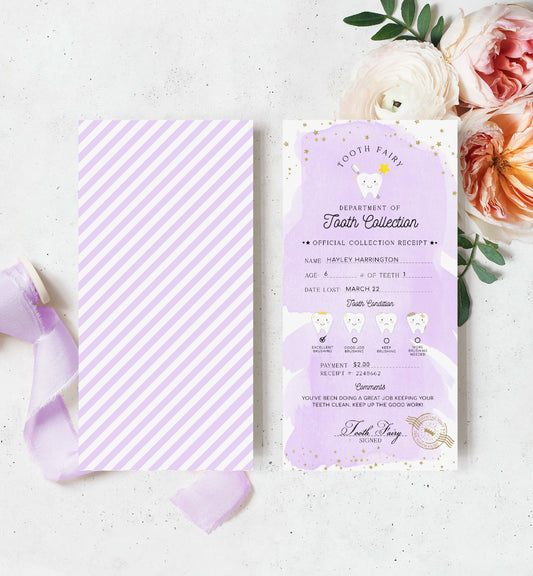 Tooth Fairy Purple | Printable Tooth Collection Letter and Receipt Template