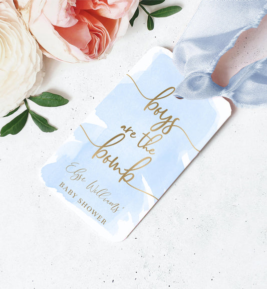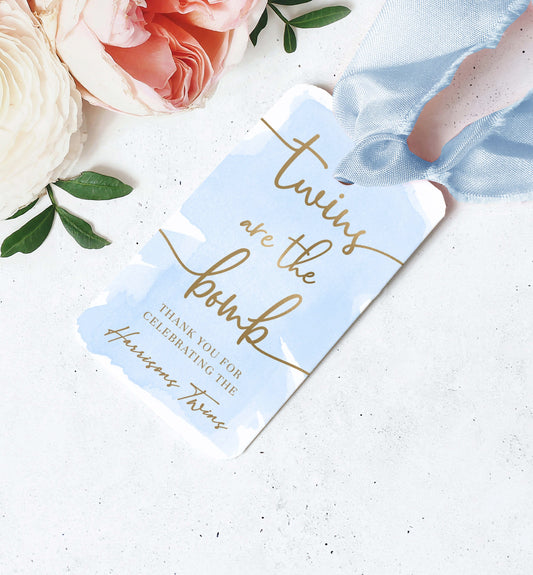 Watercolour Blue Gold | Printable Twins Bath Bomb Favour Tags