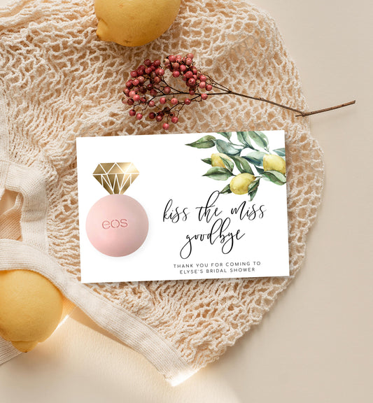 Tuscan Lemons | Printable Kiss The Miss Favour Card