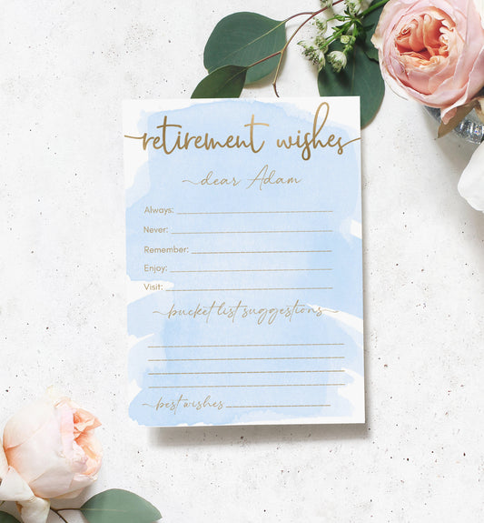 Watercolour Blue Gold | Printable Retirement Wishes Card Template