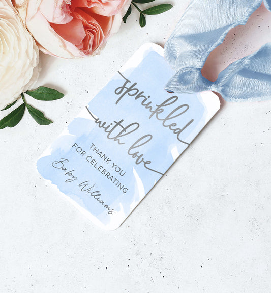Watercolour Blue Silver | Printable Sprinkled With Love Favour Tag Template