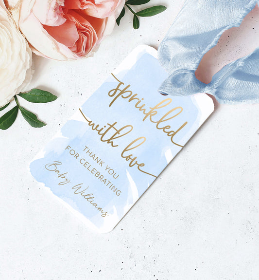 Watercolour Blue Gold | Printable Sprinkled With Love Favour Tag Template