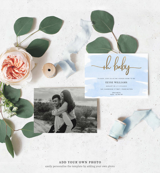 Watercolour Blue | Printable Oh Baby Shower Invitation Template